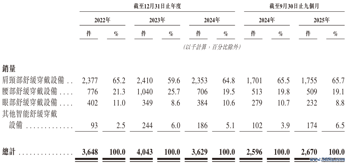 字据露馅,2022年至2024年,公司来自于智能舒徐一稔开导的销售收入永别为7.59亿元、8.88亿元、8.56亿元;2025前三季度为6.3亿元,相较上年同比增长仅0.2%。其中,动作中枢家具的肩颈舒徐一稔开导连年来销量永久逗留在2400件掌握,2025前三季度该家具的收入为3.84亿元,相较上年同比减少1.85%。